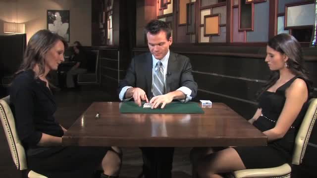 Here's an amazing Texas Hold 'Em demonstration. The performer divines the flop, turn, and river cards from a shuffled deck-and wins the hand with a powerful hand.