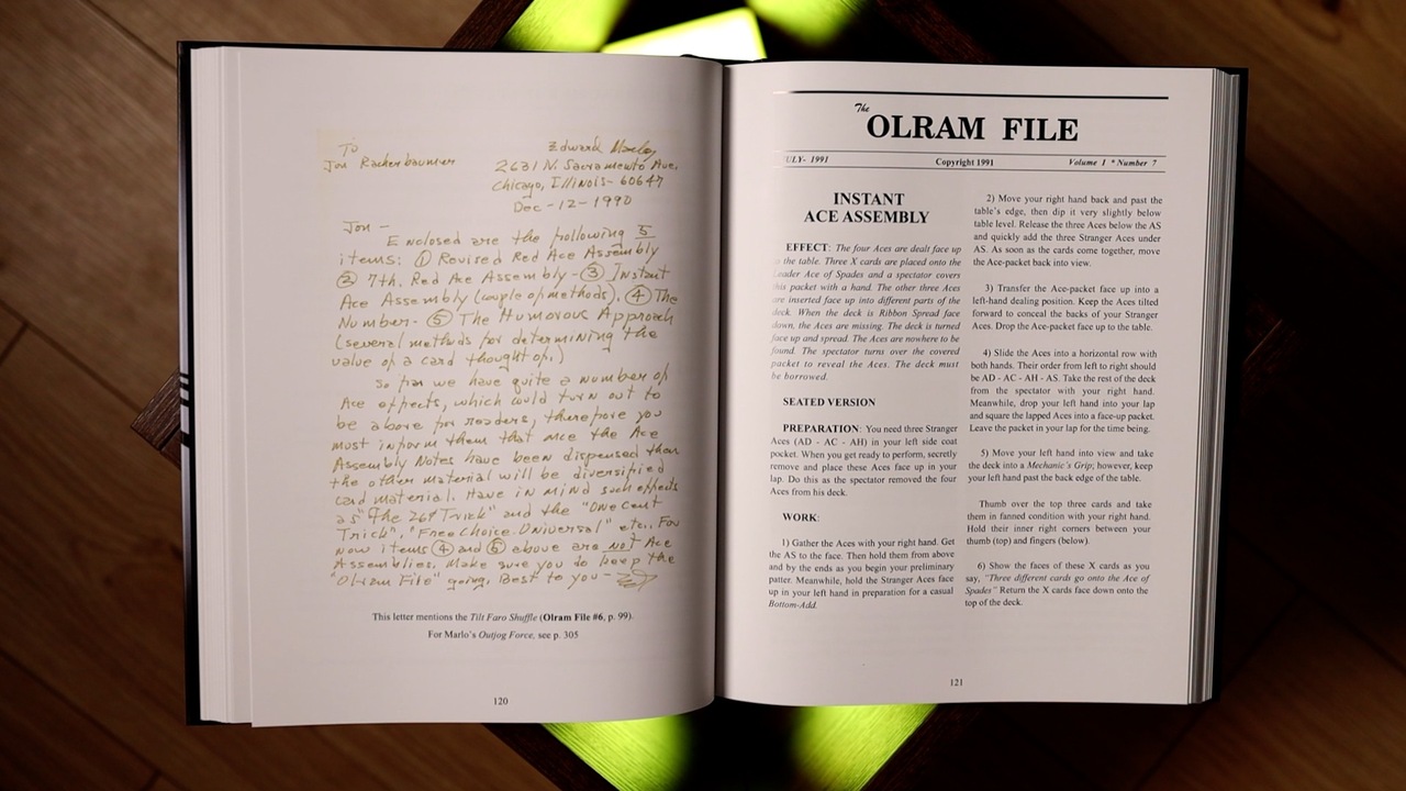 Originally published from 1990 to 1993, The Olram File was a magazine consisting of a mix of personal notes, unpublished tricks, and new material from Ed Marlo. This is material that was held close to the vest from the 1940s all the way through the 1990s. It was published across 16 issues with additional commentary and essays by Jon Racherbaumer. Difficult to obtain, this material has become one of the most sought-after material in card magic. Now it’s resurfacing thanks to the diligent work of Steve Reynolds.
