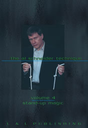 Though he is known for his legendary close-up magic, Al Schneider is also an accomplished stand-up performer and on this volume, he performs and teaches a 15-minute act that's all packaged and ready to do. Add some practice and you'll have a powerful show for any occasion.