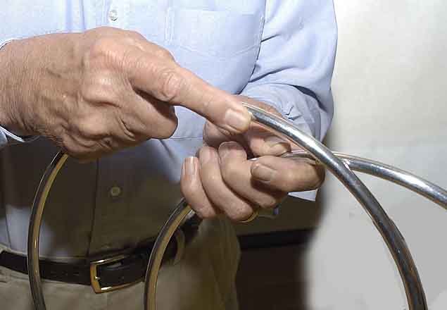 Here is a new creation for one of the oldest tricks. Joe calls it "The Master Key". What you get are a set of rings, one solid the other is a unique, new way, locking key. It is unlocked simply by tapping it (the right way) with another ring. It opens automatically. It closes and re-locks easily. Comes with 3 Rings (12" Diameter), a carrying case, and instructions.