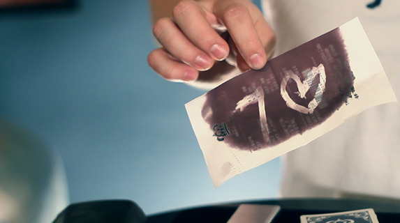 tricks printed on a receipt. He gives you about 10 or so blank recepits you can use for the trick