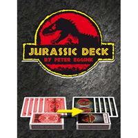 The prediction is turned face up by the spectator, to reveal the movie "Casablanca"....the spectator's card is turned face down to reveal that "Jurassic Park" is printed there. It seems the magician screwed up, as the prediction and the spectator's chosen card do not match. However, the magician waves the whole deck verse the chosen card, and when the deck is turned face down and spread out, the whole deck of cards is changed into a "Jurassic Deck" of cards, matching the chosen card.