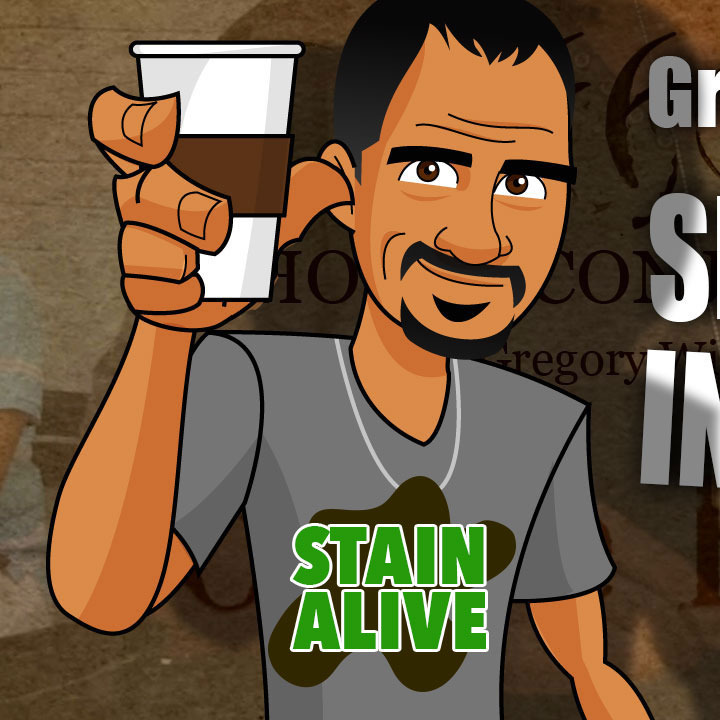 Stain Alive is one of the world's best coffee shop tricks. It's perfectly suited to the environment, EVERYTHING you need is around you, and best of all, it's easy to do AND clean up.