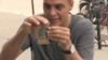 He holds a napkin up to it and...the image vanishes. He takes the sleeve off and the image is on the