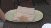 auditory subterfuge,Greg tears open a sugar packet and pours the sugar into his fist. He drop the