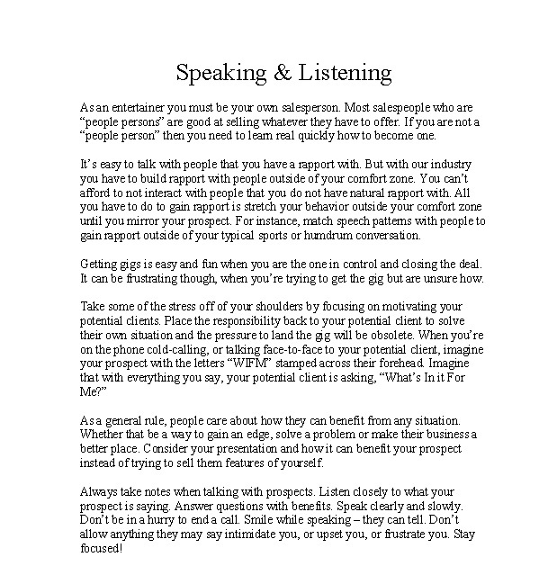 Dan tells you who to call, how to speak with them, and gives you the necessary scripts so you don't have to figure anything out. You will be much more confident to cold call prospective clients and book shows. Included in this ebook are two different contracts you can use to secure your gigs.
