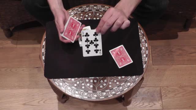 Jump Across: Two cards are selected and then lost in the pack. The first selection then jumps over to the two black kings and melts between them. The first selection is then placed aside and switches with the second selection.