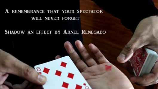 The spectator selects and signs a card. The magician puts it on their palm and amazingly moves the pips then transfers them onto their palm and turn into a real ink.