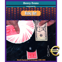 The magician has a spectator select a card from the deck. Without letting the magician see, the spectator can look at and show the selection to the audience. Then the card is placed into the center of the deck and the spectator shuffles it. The magician then claims that with in 2 attempts, he can find the selected card, in fact, the magician is so confident that he bets 10 Euros if the card is not found. Placing his wager of a 10 Euro note under his shoe, where it is safe and visible, the magician fans the deck and takes his first attempt to find the card. The revealed card is not the spectator's selection! One more incorrect guess and the spectator wins the bet! The magician using his last and final attempt pulls from the deck...a folded 10 Euro note! Since the magician's wager ended up where the selected card was in the deck, then the selected card should be where the Euro note was. Sure enough, there is now a face down card under the magician's shoe, picking it up and turning it over reveals the spectator's selected card and the magician wins the bet!