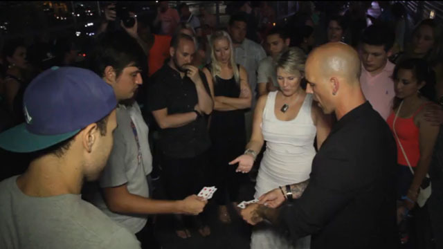 AND OVER AND THE CARDS CAN EVEN BE HANDLED BY THE SPECTATOR WITH ONLY ONE SMALL MOVE. I AM VERY