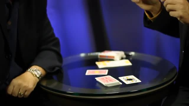 In a flash a deck of cards change from all red to all blue. This is knockout.