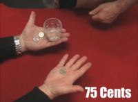 Three quarters vanish from the spectator’s hand and appear in a glass. The last coin actually appears while the spectator is holding the top and bottom of the glass.
