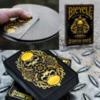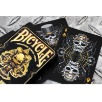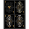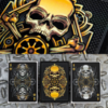 Mixing skull, gears and many other artifacts, the designs of every card in this deck will captivate. A magnificent work in a dark and highly detailed deck that reveals some kind of disturbing atmosphere thanks to the mix of gold and silver tones and a black background.