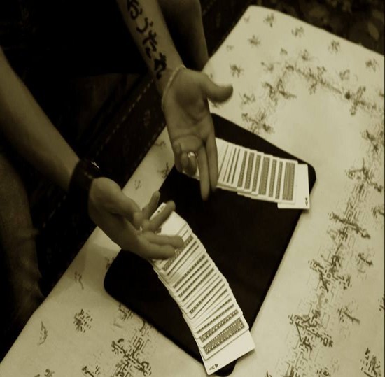the spectators chooses two cards, you put them in the deck, you cut the deck in half, and you explain to the spectators that sometimes magicians use an accomplices, and that you too for this trick you will use accomplices who are the aces, you use a small production of aces that both part of the deck will be sandwiched by aces, and after an original move you have each card chosen between two aces.