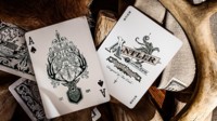 This Standard Edition features two monochromatic back-designs: Hunter Green and Deep Maroon. Twin Bucks are enshrined within beautiful flourishes that mimic the lush greenery found within Yosemite National Park. The Ace of Spades features a noble Buck with herbaceous ornamentation crowning his dignified antlers, and each Joker offers the Antler name. The tuck-case features rich embossing and metallic accents all around.