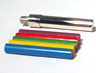 You display 5 colored rods and a small metal tube with a lid. The metal tube is held in the left hand. Turning your body and head away from the tube you request that a spectator select one of the colored sticks and place it in the tube. They are then asked to place the lid on the tube. They are also asked to HIDE the remaining sticks in a pocket or purse, etc. You turn back around. Concentrate for a moment and then HAND THE TUBE TO THE SPECTATOR TO HOLD. You stare at them and concentrate. Suddenly you tell them that the color they selected was