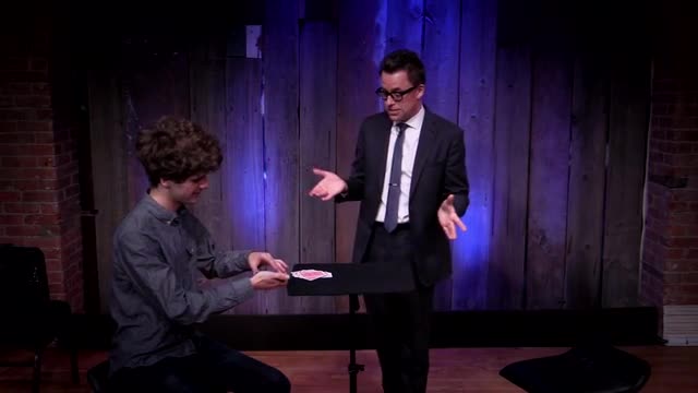 27 A card is fairly selected and lost in the pack. Someone in the audience is then instructed to pick a number that corresponds to a position in the pack. The cards are counted and the selection is found at that same number.