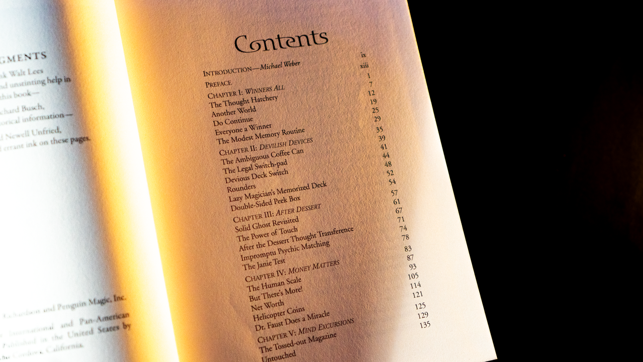 - Also included are three new deck-switches, done while standing, that require no sleights or use of pockets; a deck that secretly unshuffles itself after being mixed by a spectator; and many more mysteries using coins, bills, magazines, marbles, rope and more.