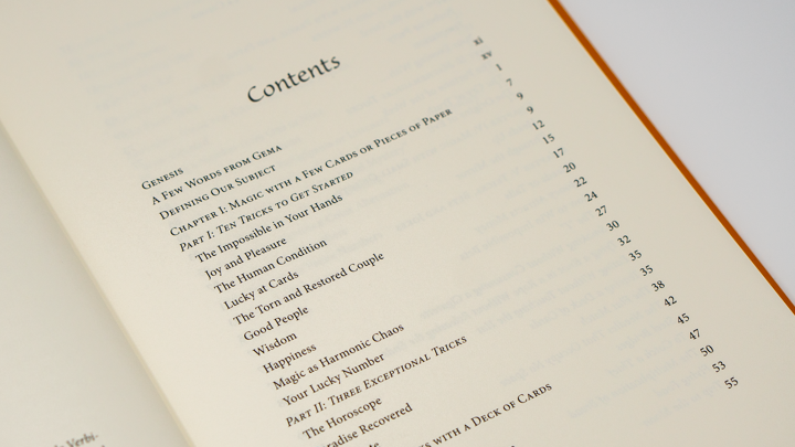 This book collects over forty such tricks and presentations, all refined and tested through professional performance. Close associate Gema Navarro, under the guidance of Juan Tamariz, has meticulously transcribed presentations from tapes of numerous radio broadcasts. The transcripts are so detailed, they first let the reader fool himself, and then give him the information necessary to entertain and astonish his audiences, and the tools to devise many other effects that happen entirely in their hands and heads.