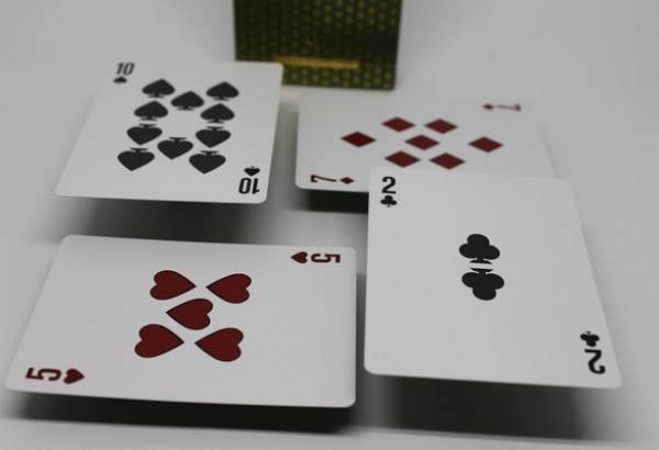 These might be my new favorite cards. Beautiful design, amazing feel, easy to faro, durable, and the green looks great against a red mat. Especially at Christmas. :)