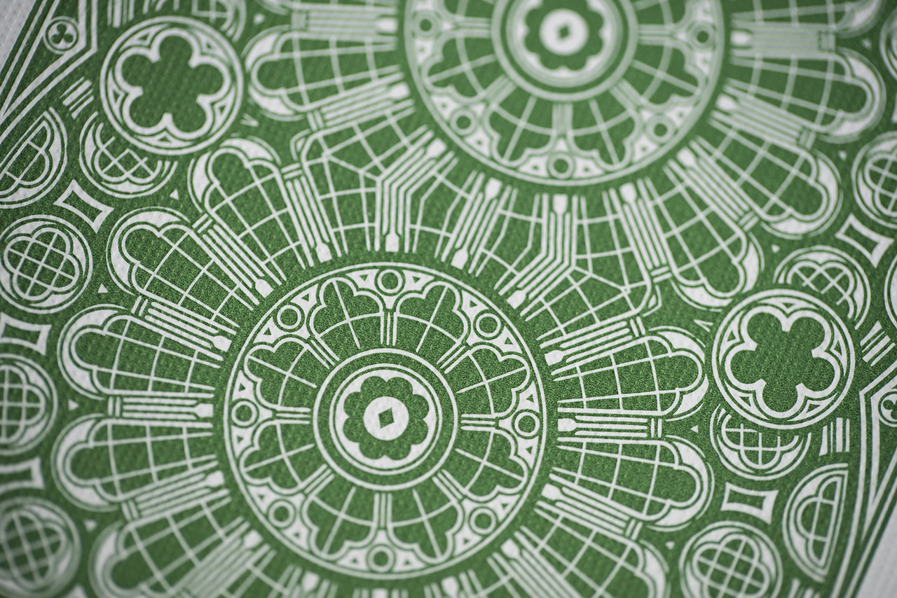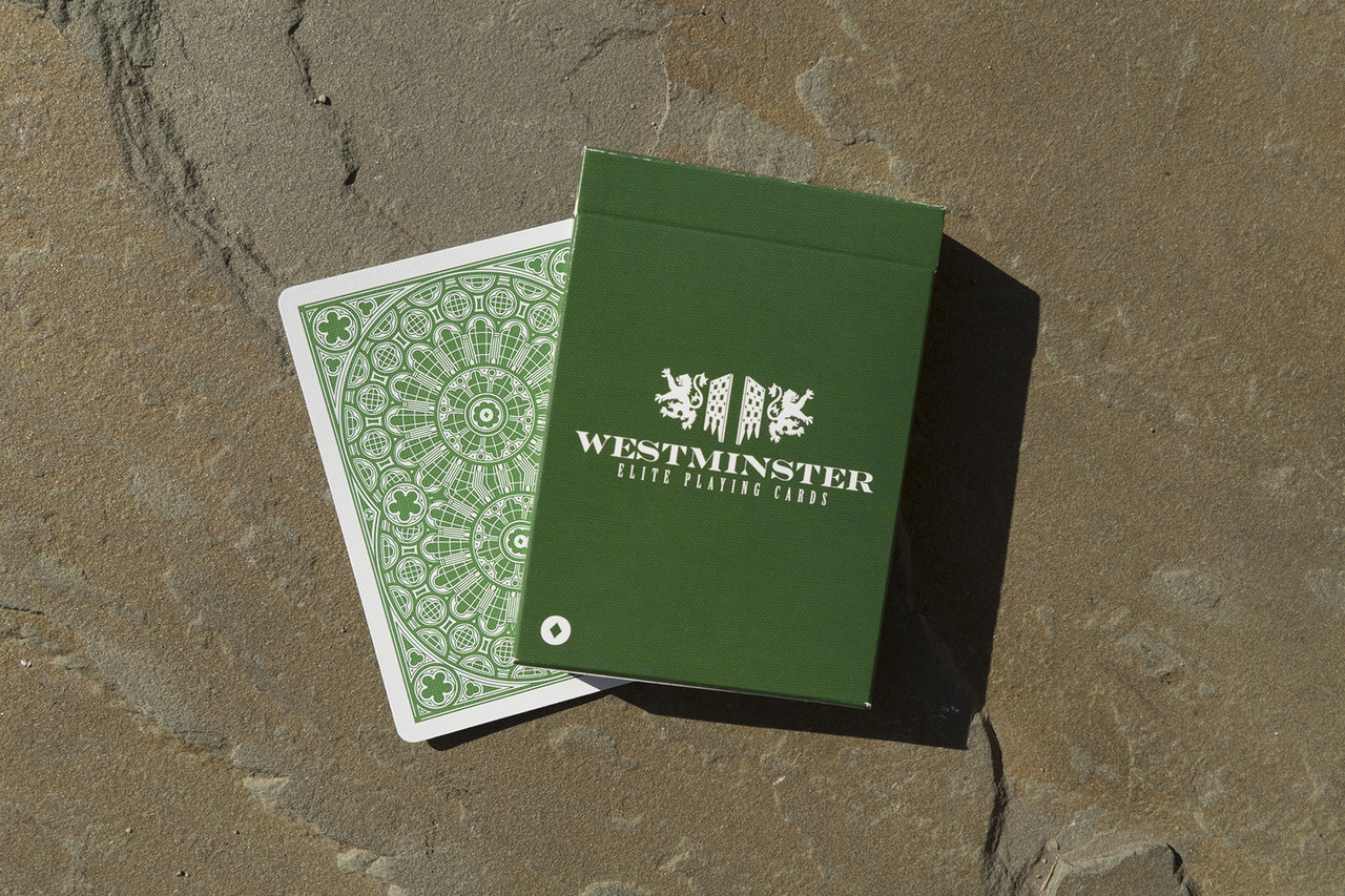 Westminster playing cards are the ultimate collaboration between England and the US. Designed by Phill Smith (creator of Stegosaurus and the DMC Black/Gold Marked deck), the Westminster deck is inspired by the gothic architecture of Westminster Abbey and offers a timeless look combined with a premium feel.