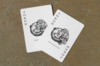 Printed by USPCC on high-end Bicycle stock with top-of-the-line finish, traditionally cut, and with metallic green ink on the back design, these cards are just as amazing to handle as they are to look at. The deck features a custom Ace of Spades, custom gargoyle jokers with a built-in reveal effect, as well as a duplicate 2H and a versatile gaff card.