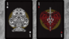 Each suit carries symbolism based on the court cards that they hold. The Spade features a cross in the center representing the cross on King John's coat. The Club hides a lion face representing the Angevin Empire.