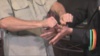 He had me twist pipe cleaners around his thumbs tight, TIGHT. Then he asked me to pick up 3 rings