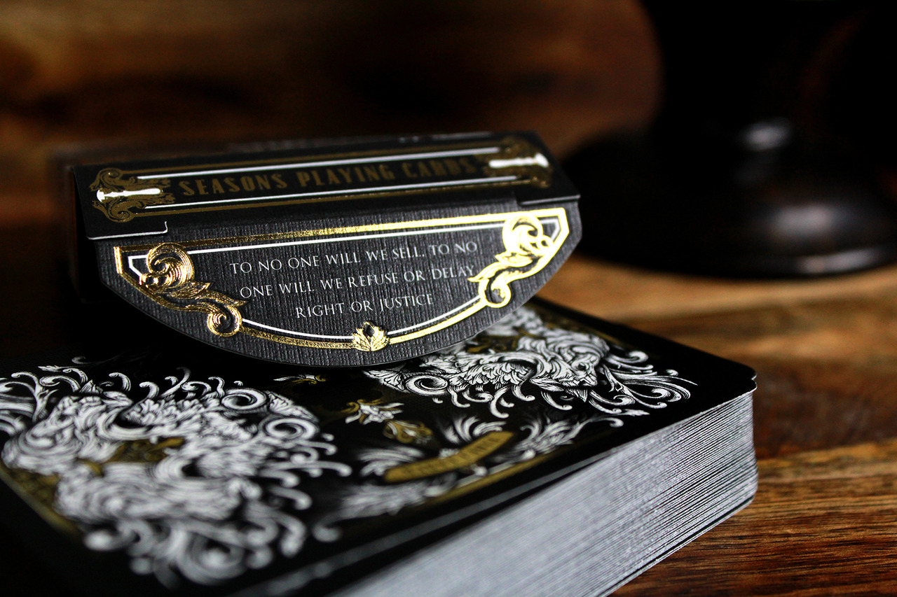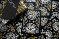 The Royals deck commands attention in rich black contrast representing the King and his empire. The sleek back design features the crest of the Angevin Empire interpreted through the stunning and regal 3-headed lion illustration.