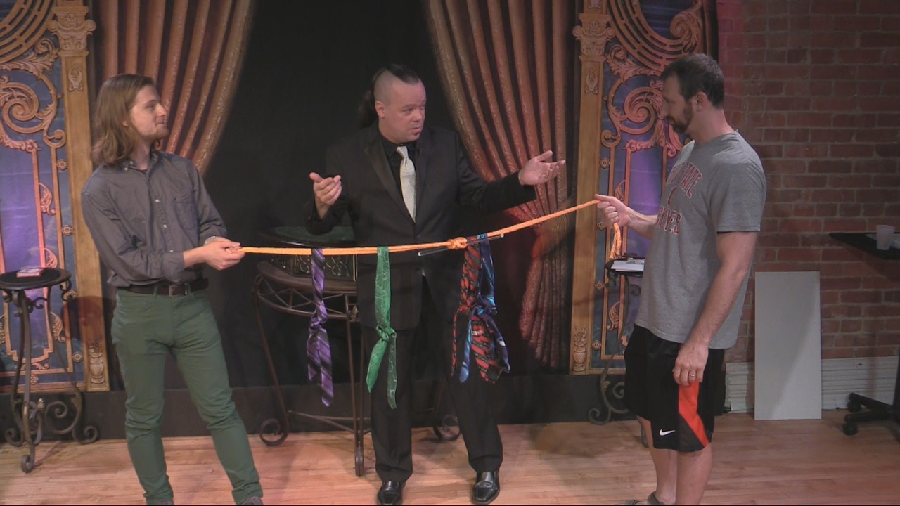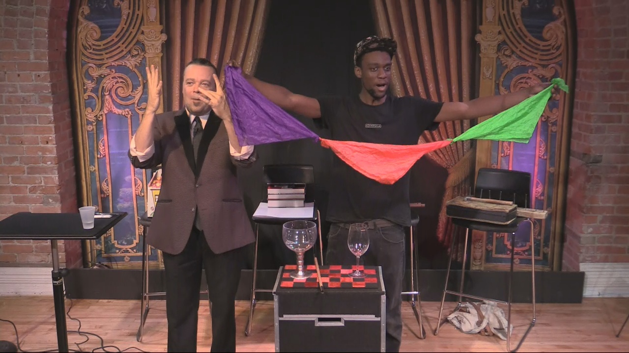 Then, the spectator becomes the star of the show, performing a funny and amazing version of the silk trick, fooling everyone... including himself.