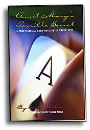 Every family has their secrets. The Williamson family has Aunt Mary. A respectable woman with a murky past, Aunt Mary has finally come clean. Revealed here for the first time as a professional card routine in three powerful acts, Aunt Mary's Terrible Secret is well within the reach of any performer. Two audience members are invited to play a simple color matching game for the chance to win fifty-two dollars. The cards are unprepared, the money is real and this incredible, easy-to-master routine builds to a devastating climax that will leave your audiences stunned. After Aunt Mary's Terrible Secret, you'll never look at little old ladies the same way again.