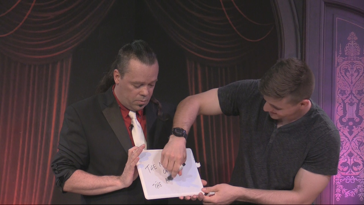 Then, you get all the work on the classic-of-all-classic slate tricks to reveal a chosen card. Don't overlook this one. It still plays as strong as ever.