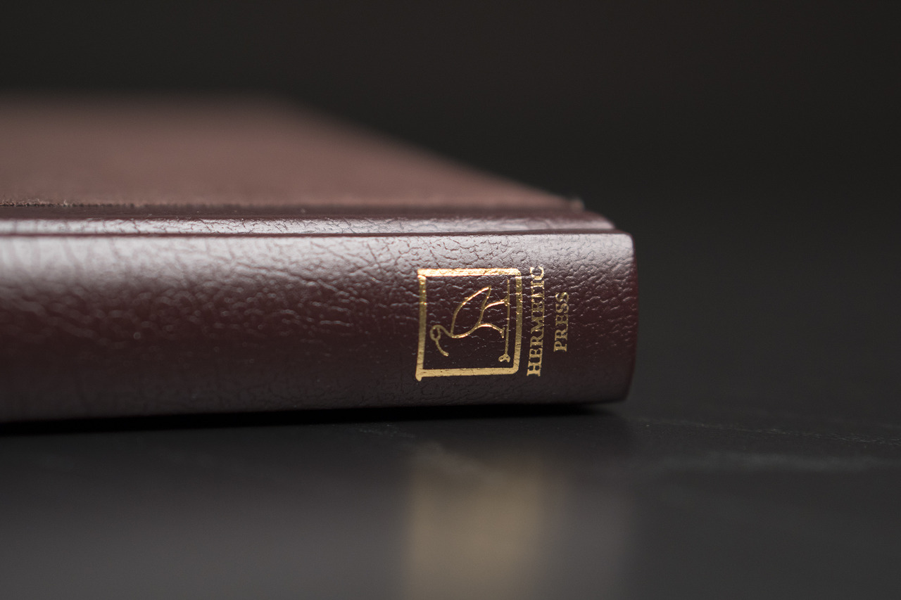 stamping is shiny gold. The pages are imperfectly aligned with each other and the paper is thicker