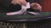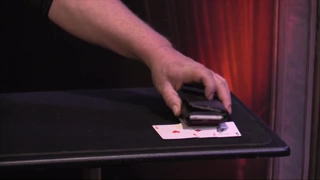 An unusual (seldom seen) penetration effect, where the aces travel through the close up mat to join the rest, underneath the spectators wallet.