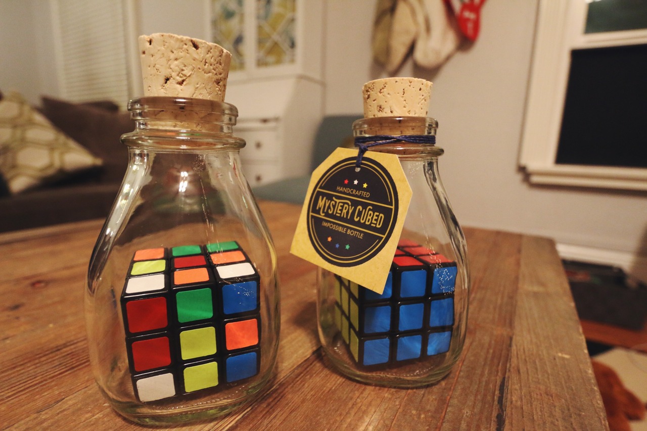 Mystery Cubed is an art piece like no other. Meticulously crafted by hand, the bottle has not been heated, cut, glued or altered in any way. The puzzle cube inside is fully functional and in its original condition.