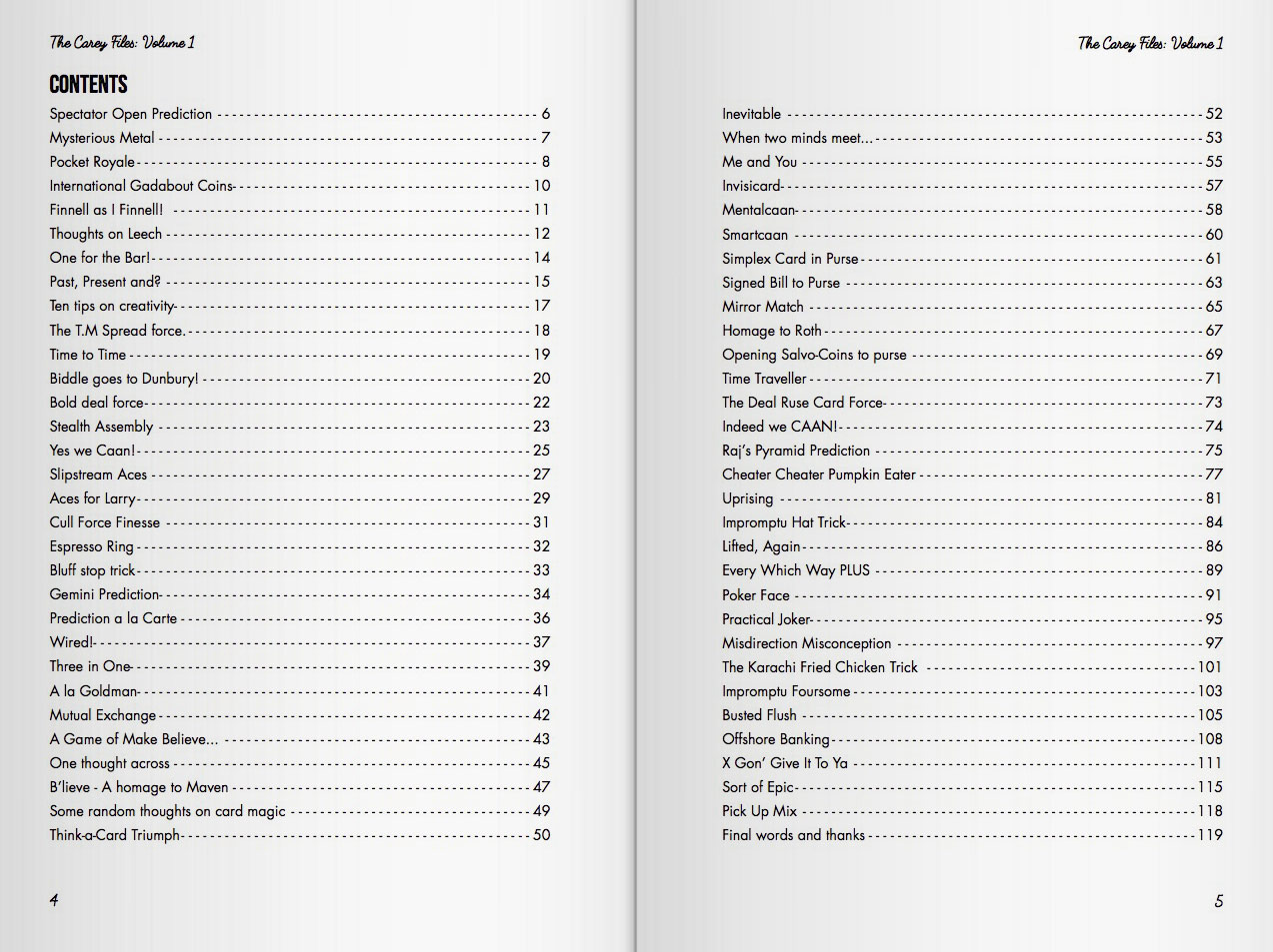 The Carey Files is a handbook of doable commercial magic for both the professional and amateur performer.
