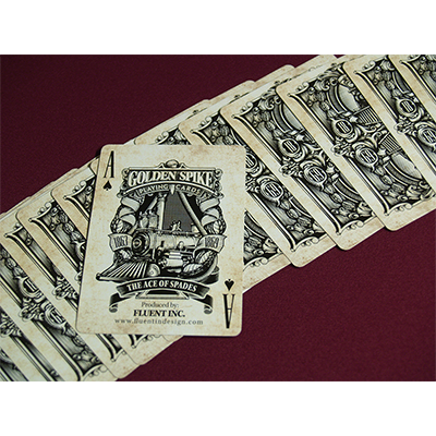 Golden Spike Playing Cards are inspired by the completion of the 1st Transcontinental Railroad On May 10th, 1869. It was the first rail line that connected the east to the west and revolutionized transportation and commerce in a post Civil War United States. A Golden Spike was created as a commemorative piece to celebrate the completion of the 1st transcontinental railroad and was driven into the ground where the Union Pacific met the Central Pacific Railroad at Promontory Point, Utah. When the hammer rang out and the golden spike was driven into the ground, a new era of industry and expansion rang out across the United States.