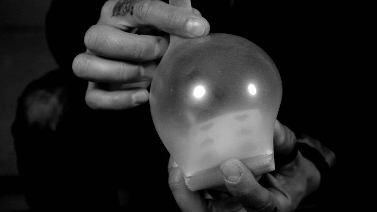 their signed card out of the balloon visually without breaking the balloon. This is done with a
