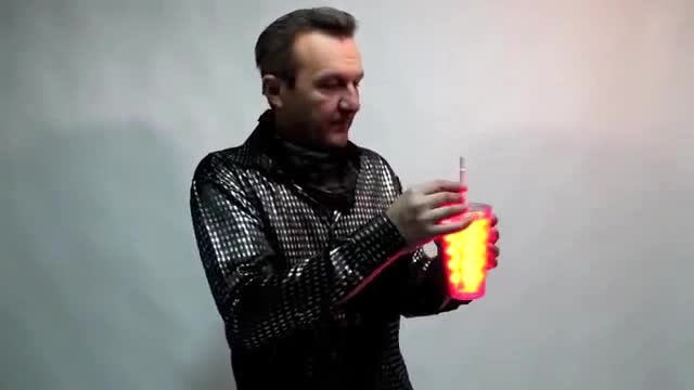 You catch an empty hand colored lights ( or only a red lights ) and throw them in a glass, fill the glass with lights and then use the tube you can interfere with the lights and drink! After the lights will glow in your mouth!