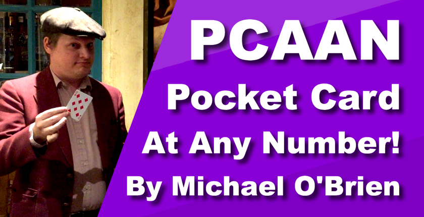 "Pocket Card at Any Number" is a clean ACAAN type effect featuring an awesome move called the "Pocket Utility Switch." The spectator Chooses a card and it is lost into the pack. The spectator can then deal as many cards as they like (a completely free choice). The card they stopped at is set aside and revealed to be the chosen card!
