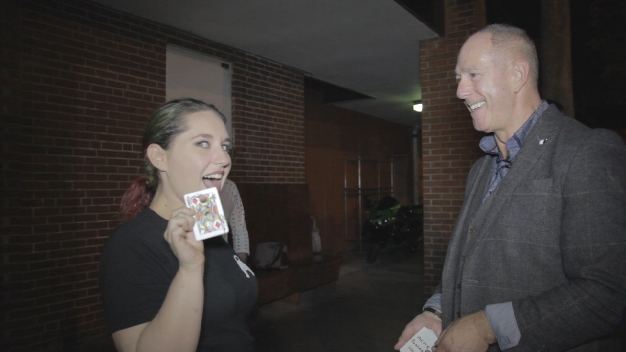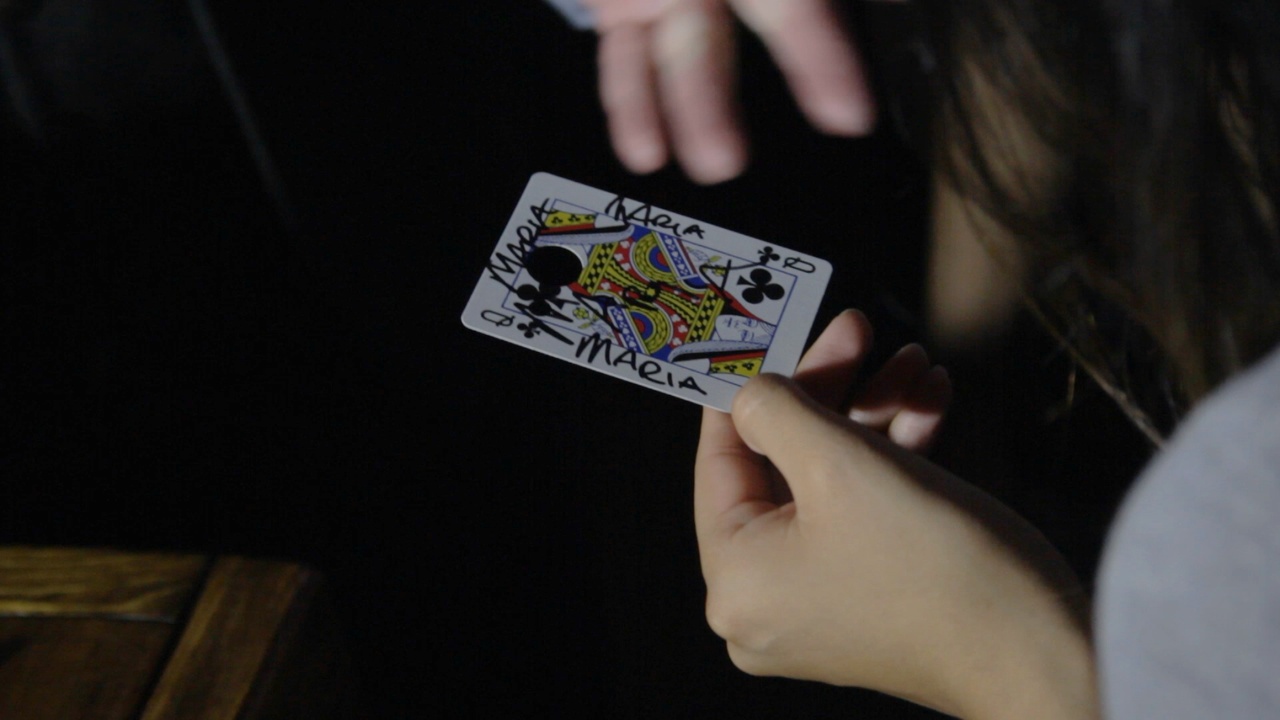traveling from a white card to a previously signed playing card. And the whole set-up based on the