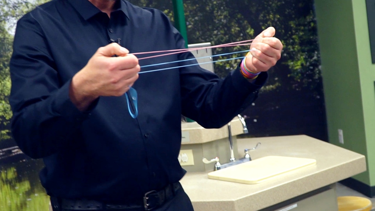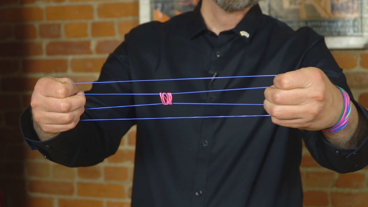 Phase FOUR: A third band is introduced and wrapped around one of the bands on your fingers, and it impossibly travels up and down the bands like an acrobat.