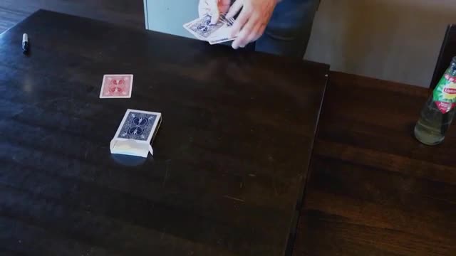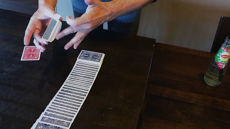 A BLUE backed "Prediction" card is removed from a RED deck and is isolated under the card box. In this manner, it remains in FULL VIEW at all times throughout the routine.