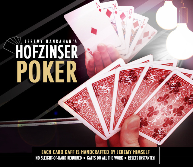 Imagine being able to change a card's value with little to no sleight-of-hand. Now imagine being able to change 5 cards instantly with no sleight-of-hand. This is possible with Hofzinser Poker. You explain that card cheats have altered playing cards so they can actually see through the back of a playing card. Five cards are held up to a light one at a time to prove that you can actually see through the back of a playing card under certain lighting conditions. At the end of this display, you ask the spectator if they would bet on that particular hand with it being filled with such low-value cards? They, of course, will say no. You then turn the cards over to reveal a royal flush. No sleight-of-hand required. Instant reset. Comes with 5 custom hofzinser cards matched in a set. See why this effect sold out at Magi Fest and Blackpool. Comes with in depth pdf instruction. You will be able to perform this amazing effect right after reading the detailed pdf.