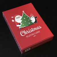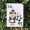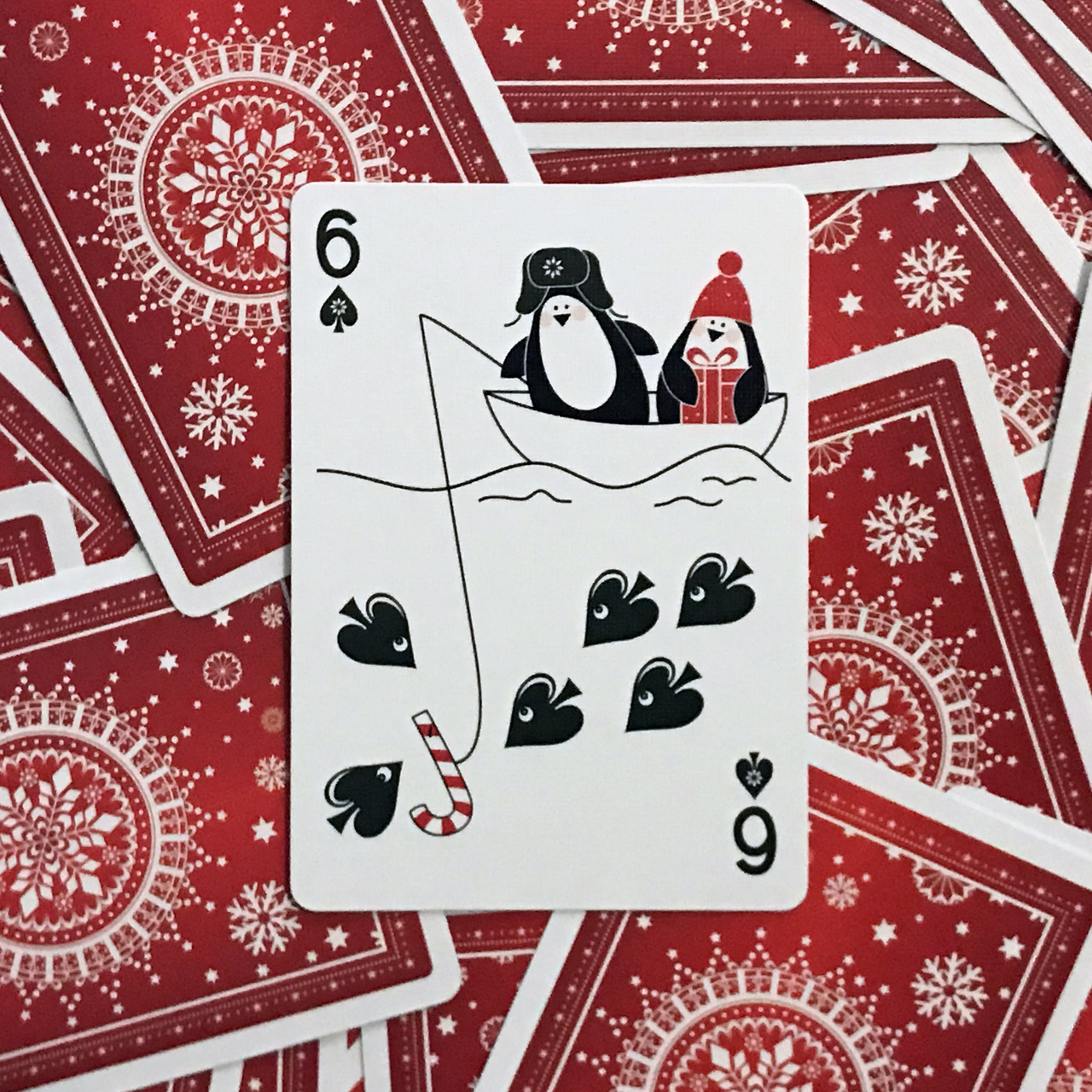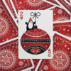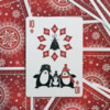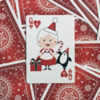 This deck is full of unique, whimsical images on EVERY face. No two cards are the same, and they include playful images of Santa, snowmen, reindeer, and of course penguins! The pips are integrated into each face design, making this a fun transformation-style deck for the season. The gorgeous red and white snowflake back design looks classic and traditional, while having enough intricacy to look great with any fancy cardistry move. The diptych jokers combine to make a single larger image of Santa flying in his sleigh!