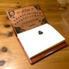 OUIJA board sheet stuck on A6 size notebook and planchette gimmick are attached.