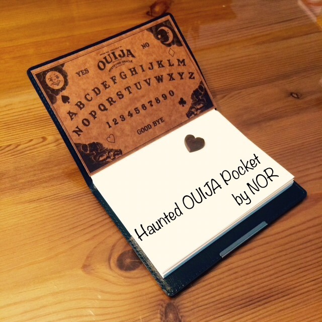 OUIJA board sheet stuck on A6 size notebook and planchette gimmick are attached.