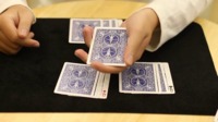 In the second phase, the cards are placed into four separate piles, and one by one, the Queen (in this example) disappears from its pile - even with both sides of the cards shown! Finally, as a special kicker, one more pile of cards is shown - the Queens have magically transported from their previous piles all into this one pile.