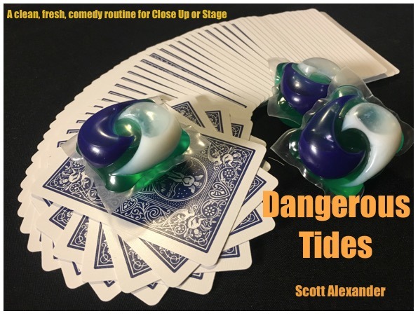 Dangerous Tides is a highly commercial and contemporary routine fresh from today's clickbait headlines! Scott uses the premise of eating laundry pods and combines it with enduring, classic card magic to create a charming routine where the spectator escapes the challenge, with a little magical help from you. Scott discusses ideas he uses in this hilarious routine fusing elements from such greats as Paul Harris, JG Thompson, Larry Jennings and even Robert Houdin. This routine is awash with laughs....it definitely puts them through the ringer, and leaves everyone coming out clean on the other side!