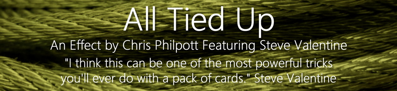 “Of all the effects I’ve come up with, this is the one I do more than any other. I have fried a room full of knowledgeable magicians with it and done it for friends who became very emotional when it was performed for them. If I have time for just one effect, it’s All Tied Up.” –Chris Philpott